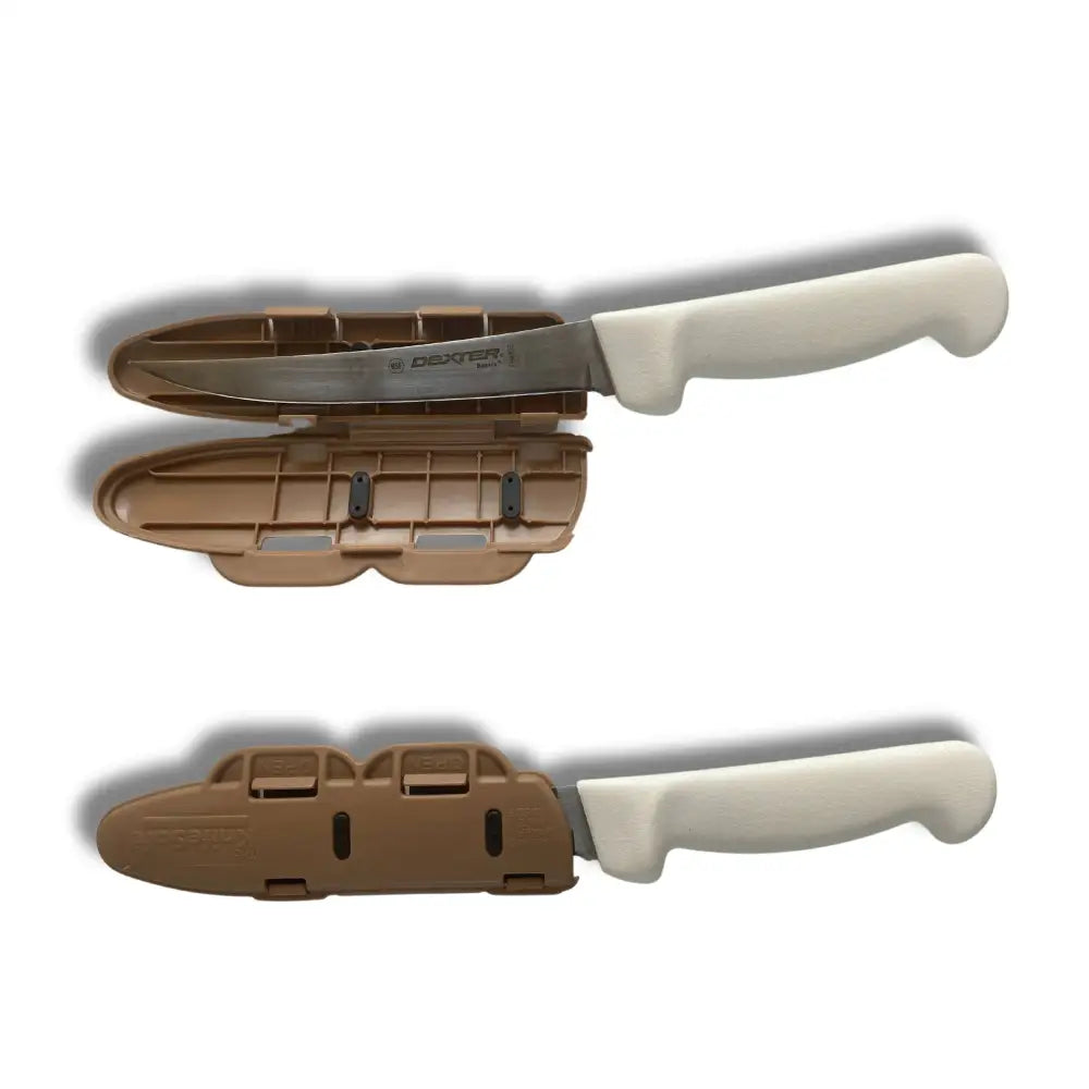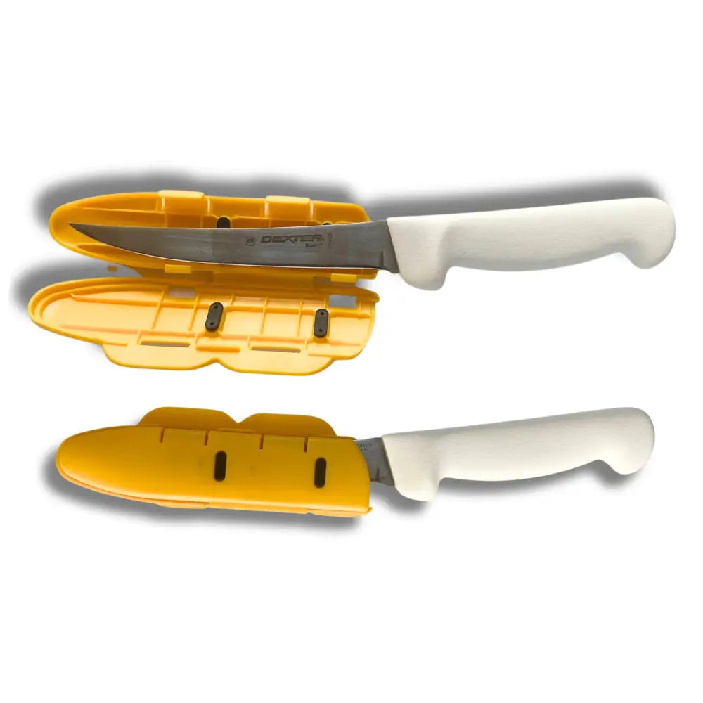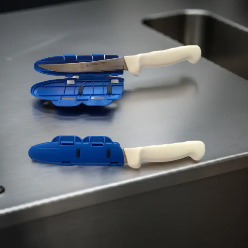 Why Choose 6-Inch Blade Guard? Medium knives are the workhorses of most kitchens, and this 6-inch guard provides reliable protection for your most-used culinary tools. The patented hinge design ensures secure protection while the clear construction maintains easy identification. Also used by outdoorsman for fishing and hunting worldwide. Multiple colors available.