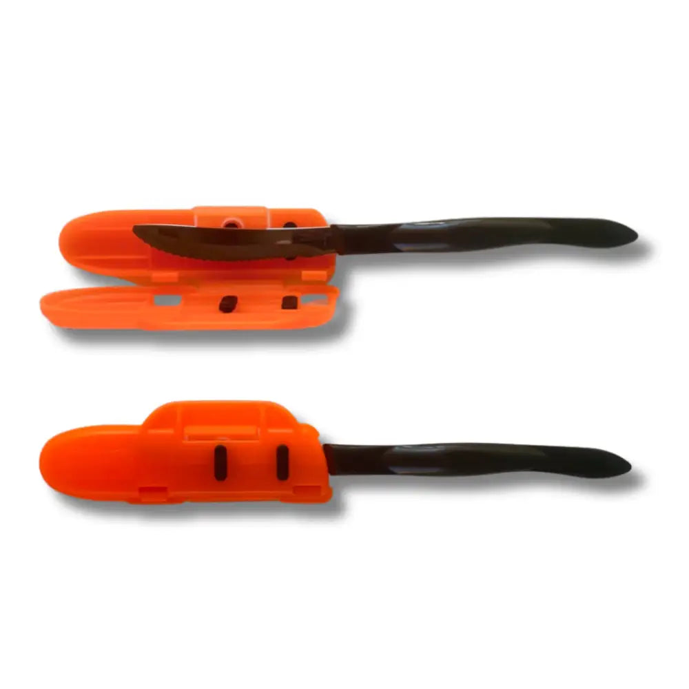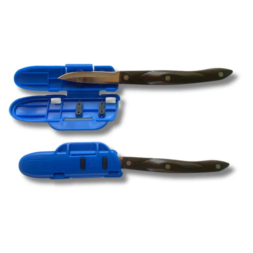 Why Choose 4-Inch Blade Guard? Small knives need precise protection, and this 4-inch guard delivers reliable coverage for your most delicate cutting tools. The patented hinge design ensures secure protection while the clear construction maintains easy identification of your essential small knives. Improves storage and transportation of your knives, also used by outdoorsman for fishing and hunting worldwide. Multiple colors available.